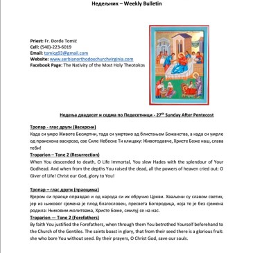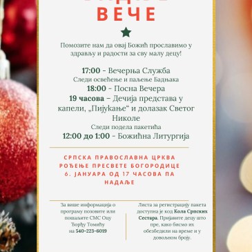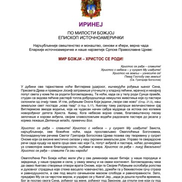 Српска Православна Црква својој духовној деци о Божићу 2021. године ПОРФИРИЈЕ по милости Божјој православни Архиепископ пећки, Митрополит београдско-карловачки и Патријарх српски, са свим aрхијерејима Српске Православне Цркве – свештенству, монаштву и свим синовима и кћерима наше свете Цркве: благодат, милост и мир од Бога Оца, и Господа нашега Исуса Христа, и Духа Светога, уз радосни … More Божићна посланица – Encyclical – Nativity
