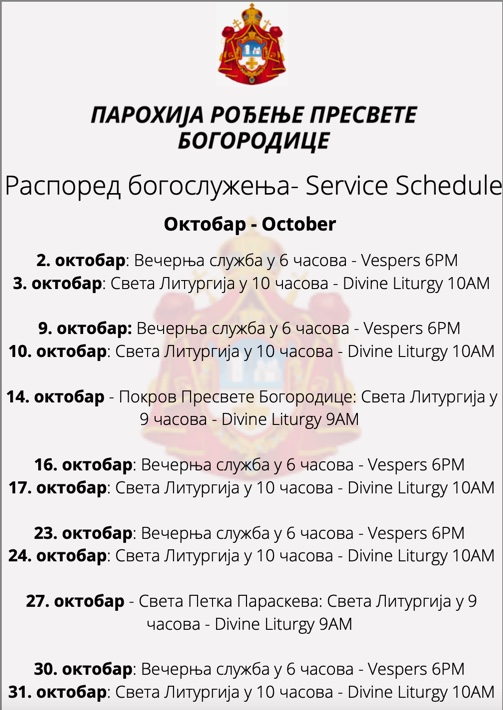 Распоред богослужења – Service Schedule Објављено 25 септембра, 2021 аутор: tomicdj Подели ово: Click to share on X(Отвара се у новом прозору) X Притисни да поделиш на Facebook-у(Отвара се у новом прозору) Фејсбук Свиђа ми се Учитавање... Related