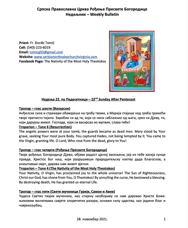 28. новембар: Недељник – Weekly Bulletin Објављено 25 новембра, 202125 новембра, 2021 аутор: tomicdj november-28-weekly-bulletinDownload Подели ово: Click to share on X(Отвара се у новом прозору) X Притисни да поделиш на Facebook-у(Отвара се у новом прозору) Фејсбук Свиђа ми се Учитавање... Related