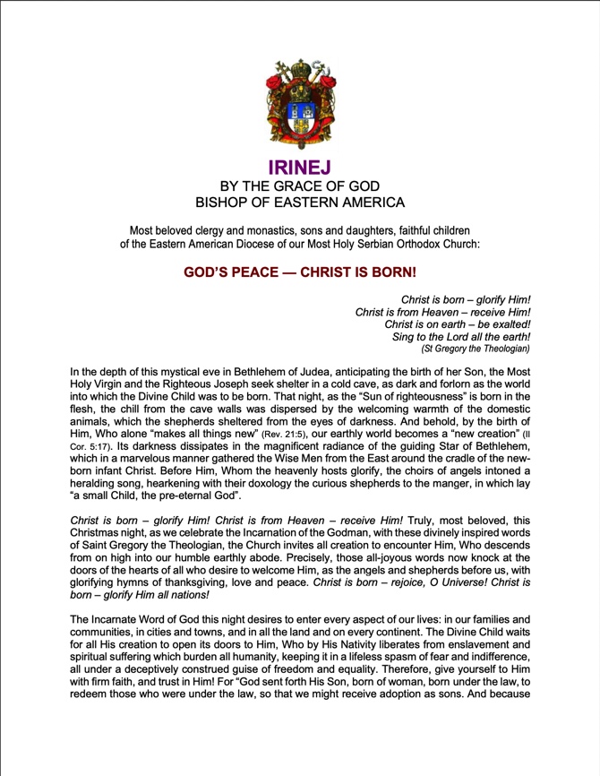 Архипастирска Божићна порука – Archpastoral Christmas Message Објављено 4 јануара, 2022 аутор: tomicdj Подели ово: Click to share on X(Отвара се у новом прозору) X Притисни да поделиш на Facebook-у(Отвара се у новом прозору) Фејсбук Свиђа ми се Учитавање... Related