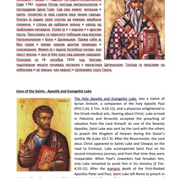 ИРИНEJ ПО МИЛОСТИ БОЖЈОЈ ЕПИСКОП ИСТОЧНОАМЕРИЧКИ СРПСКЕ ПРАВОСЛАВНЕ ЦРКВЕ Најљубљеније Нам Свештенство и Монаштво, Синови и Кћери, верна чада Источноамеричке епархије наше најсветије Цркве! Са изобилном радошћу, која произилази из нашег очинског срца Вас поздрављамо, овим најсветлијим и најподеснијим поводом у нашој свеопштој историји, светој и световној: 100. ГОДИШЊИЦИ ОСНИВАЊА ПРВЕ ЕПАРХИЈЕ СРПСКЕ ПРАВОСЛАВНЕ ЦРКВЕ У … More ARCHPASTORAL WORD ON THE CENTENNIAL OF THE FIRST SERBIAN ORTHODOX DIOCESE IN AMERICA & CANADA